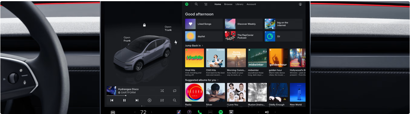 - 모델 Y는 SUV 스타일로 실내와 적재 공간이 매우 넉넉해 패밀리카로 최적화되어 있습니다.