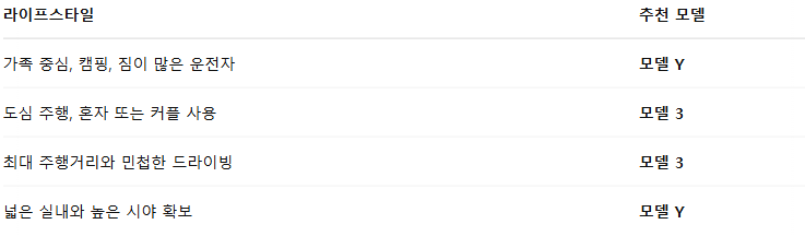 - 모델 3는 상대적으로 승차공간이 낮아 젊은층이나 1~2인 가족에게 어울립니다.