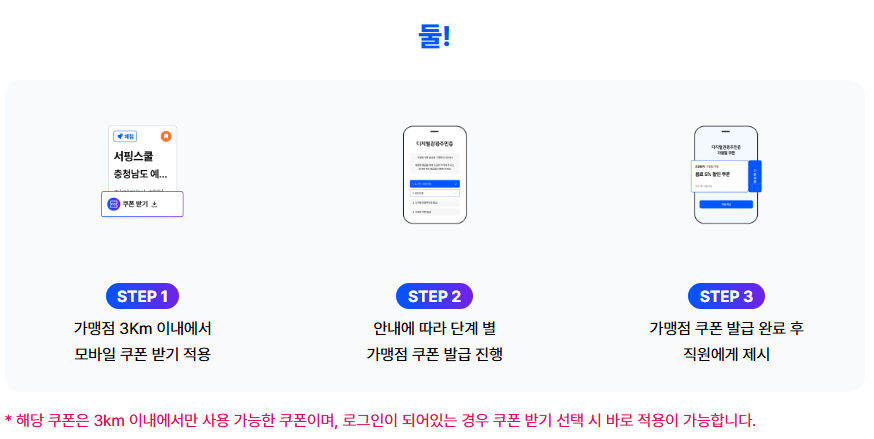 쿠폰 이용 방법은 다음 세 가지가 있으며, 편한 방법으로 사용하시면 됩니다.