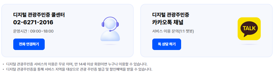 - 서비스 이용에 문의사항이 있다면 전화(02-6271-2016)하거나 카카오톡 채널로 문의 하시기 바랍니다.