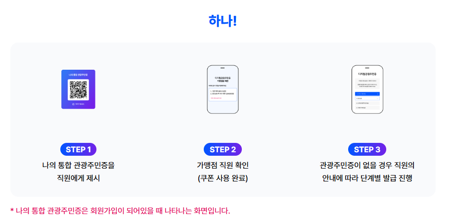발급받은 관광주민증은 아래와 같은 방식으로 활용할 수 있습니다.