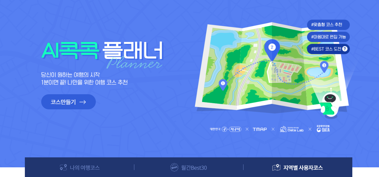 여행지를 고르기 어렵다면 AI콕콕으로 나를 위한 여행지를 추천받아보는 것도 좋습니다. 나의 관심사와 나와 비슷한 성향의 사용자 데이터를 분석하여 맞춤형 여행 정보를 제공합니다.