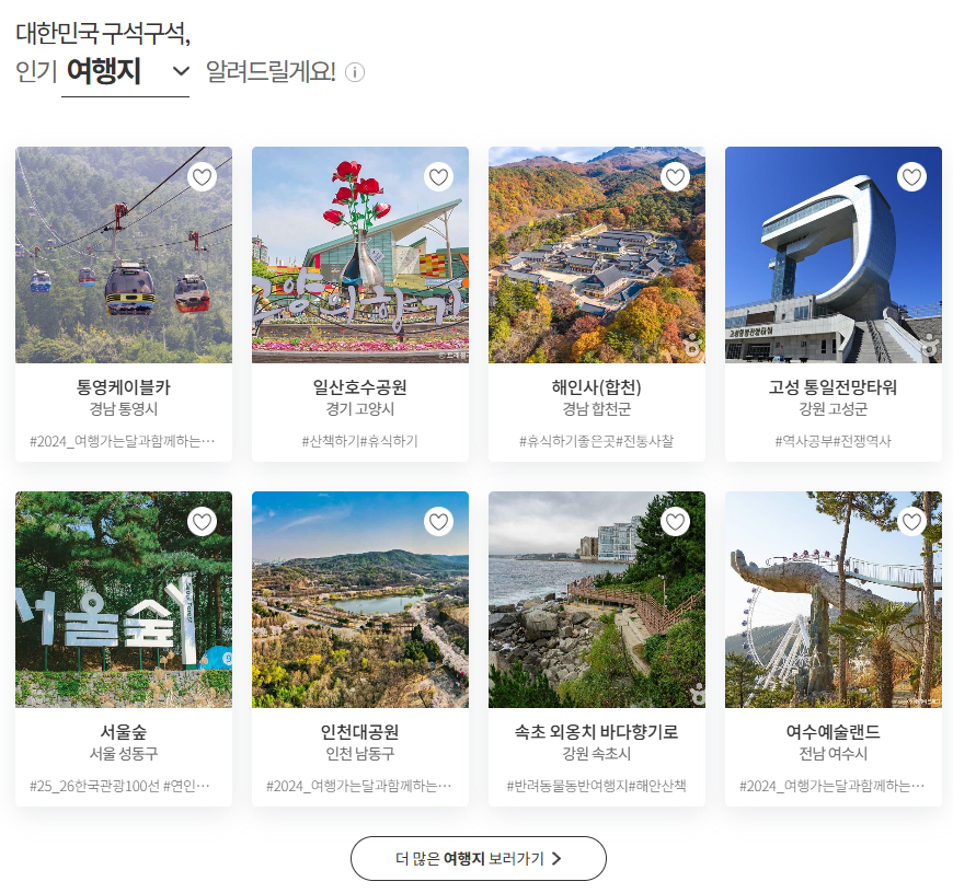 ‘대한민국 구석구석’은 한국관광공사가 제공하는 국내 여행 정보 포털로, 전국의 관광지, 축제, 음식점, 숙박 시설 등 다양한 정보를 제공합니다.